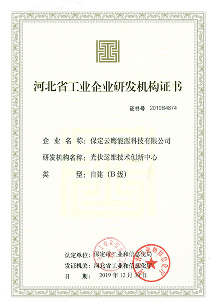 河北省工業(yè)企業(yè)研發(fā)機構(gòu)證書
